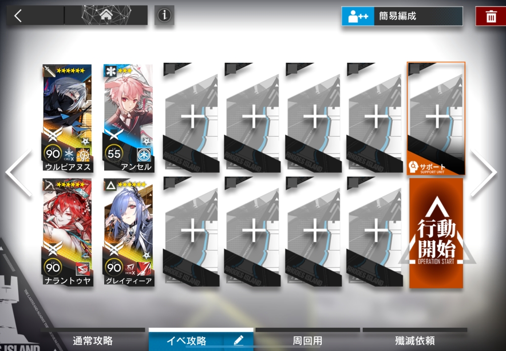 続いて、狙撃のナラントゥヤちゃんを早く起こしたいので、医療のアンセルきゅんをIN。