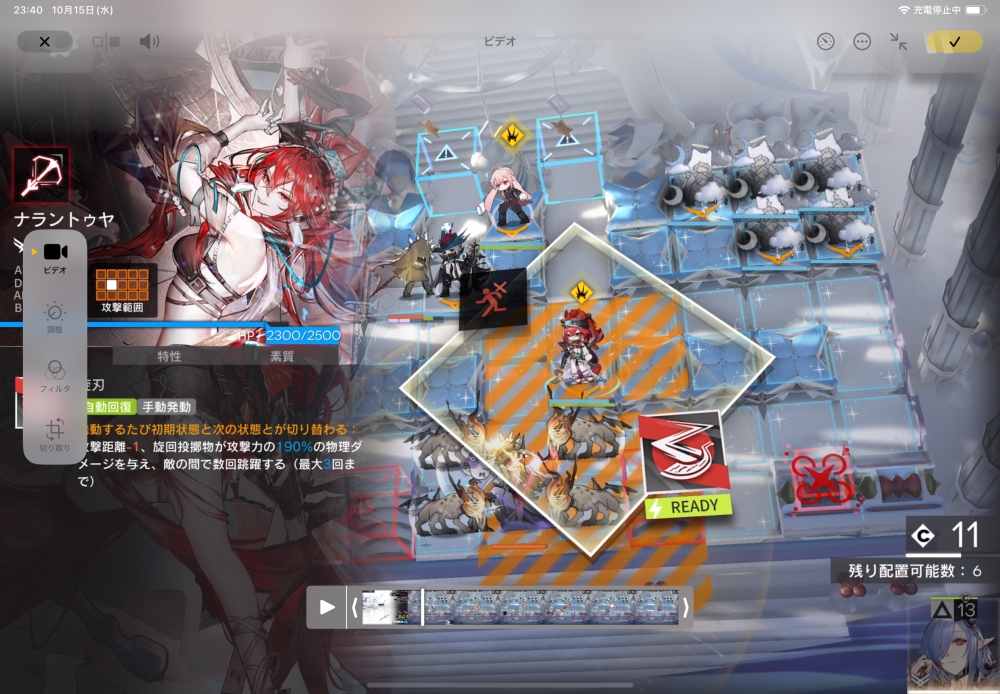 お次は、左側ルートに敵が進攻してくるので、前衛のウルピッピを投入。スキルゲージを溜めていきます。