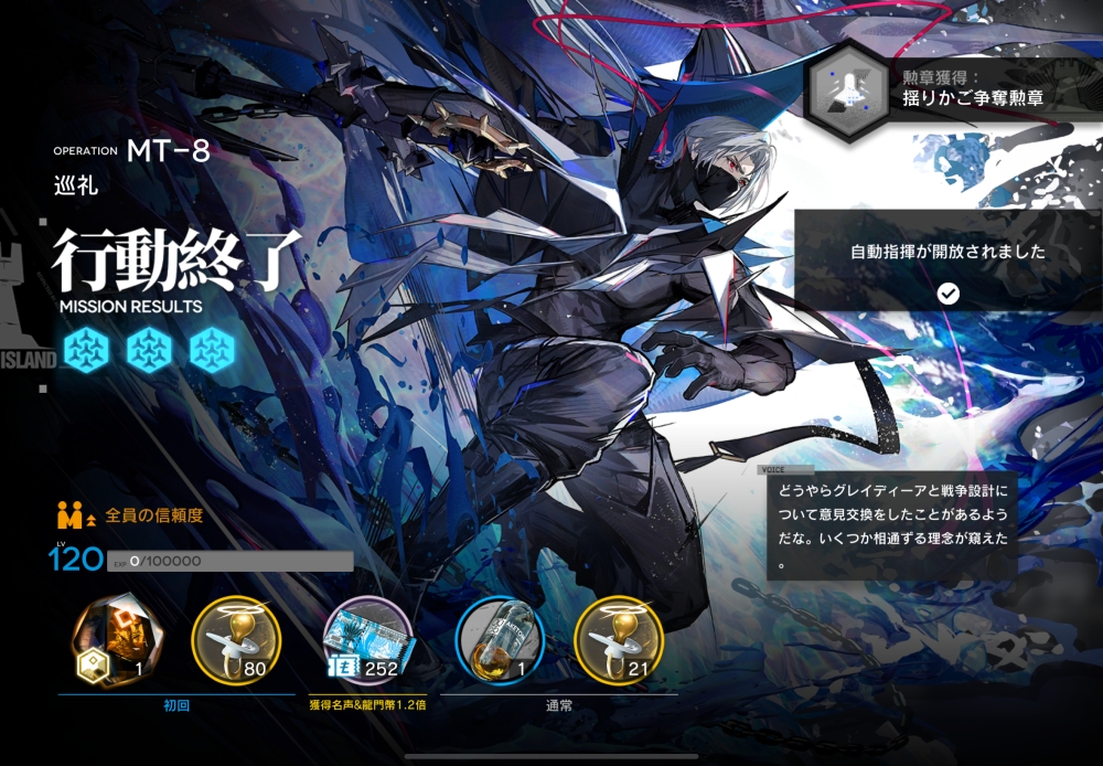 あとは、このまま敵を倒して作戦終了。無事、アークナイツ MT-8 攻略完了です。お疲れさまでした。