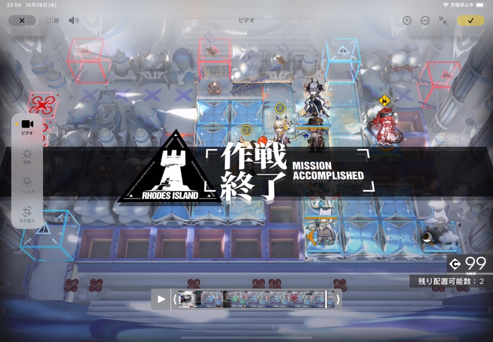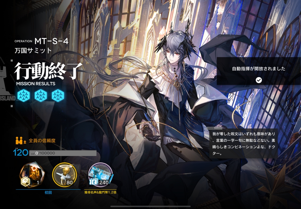 あとは、このまま敵を倒して作戦終了。無事、アークナイツ MT-S-4 攻略完了です。お疲れさまでした。