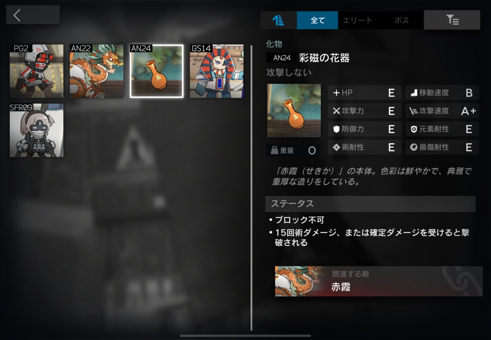 赤霞(せきか)の本体で敵の数にカウントされない。ブロック不可で、15回術攻撃か確定ダメージで倒せる。