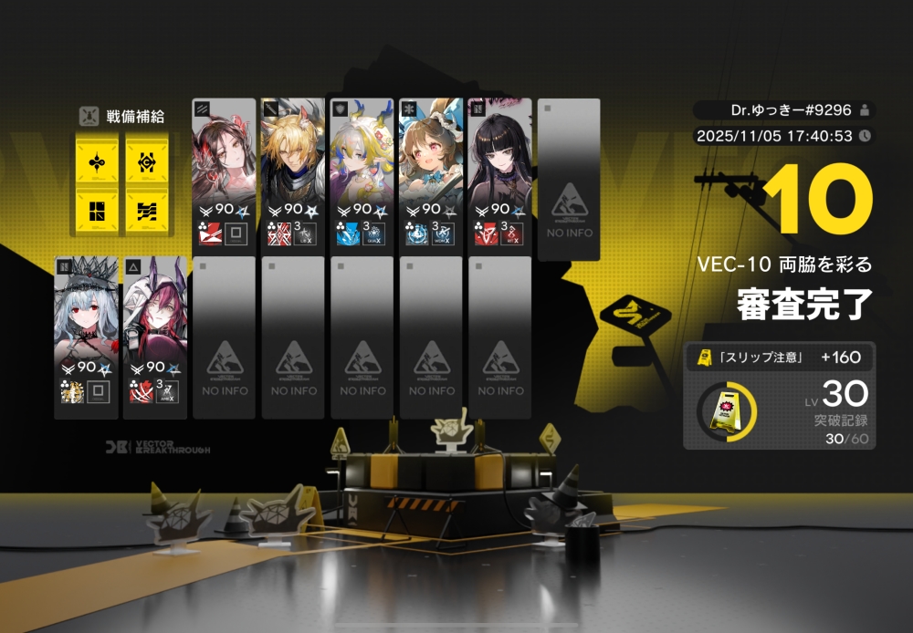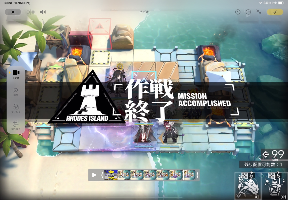 あとは、このまま敵を倒して作戦終了。無事、アークナイツ VEC-10 攻略完了です。お疲れさまでした。