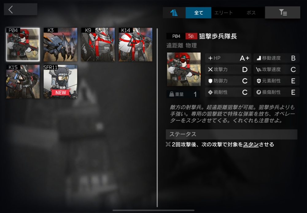 スタン野郎のベテランっぽい人。長時間スタンさせてくるので、すり抜けられても大丈夫なよう対策が必要。4体ほどスタンさせてくる。だいきらい。