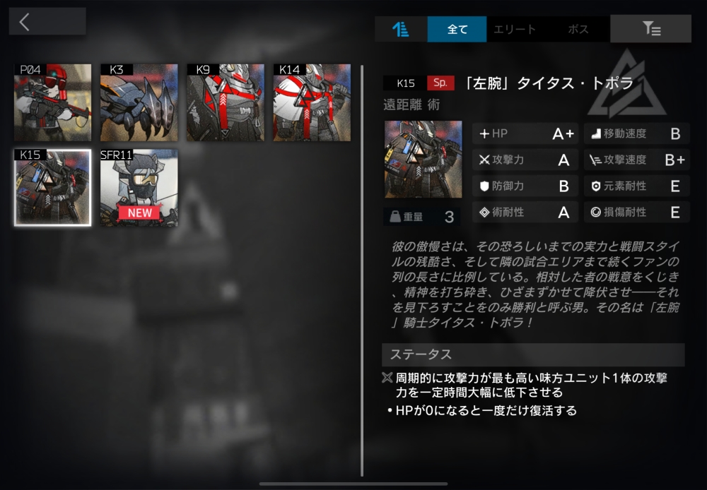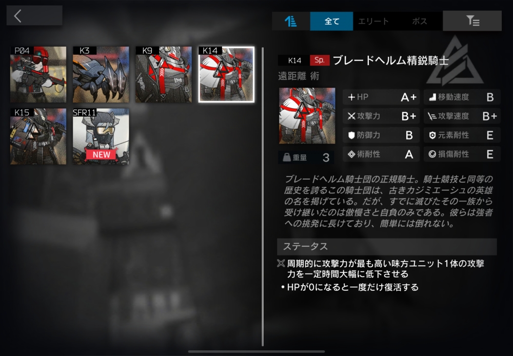また君かい?ブレードヘルム精鋭騎士よりも強い。同じく遠距離術攻撃なので地味に痛い。攻撃力が一番高い味方の攻撃力を下げてくる。倒しても1回だけ復活する。