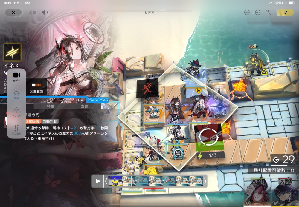 そして、コストを2人分溜めてから、特殊の帰溟スペクターちゃんと前衛のウルピッピを投入。スキルゲージを溜めていきます。