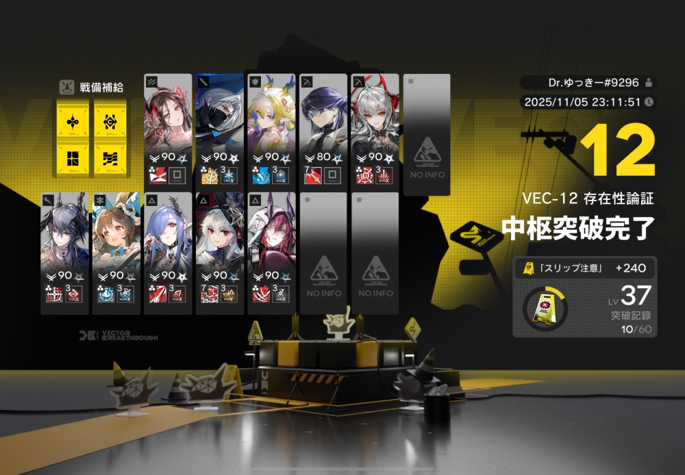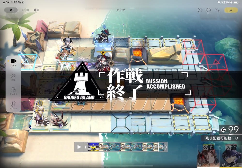 あとは、このまま敵を倒して作戦終了。無事、アークナイツ VEC-12 攻略完了です。お疲れさまでした。