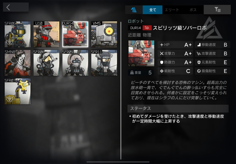 攻撃力と防御力が高めの恐怖のマシン。初めてダメージを受けると、30秒間、攻撃速度+150、移動速度+150%になる。2体ほど襲いかかってくる。