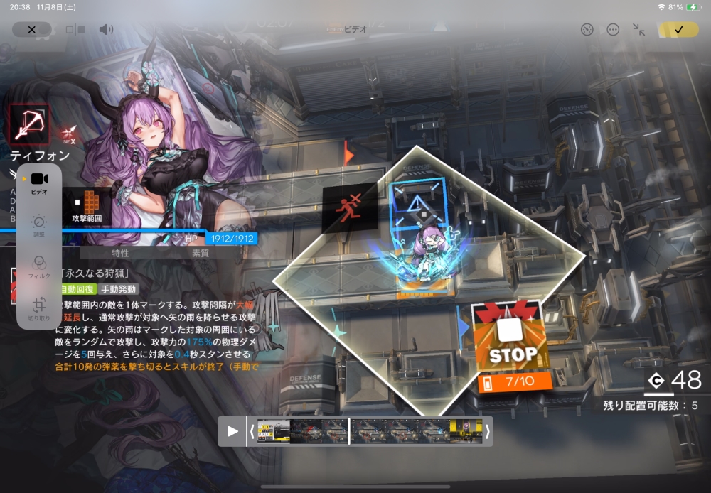 お次は、狙撃ティフォンちゃんがスキルを3回放ったら、スキルを停止させます。