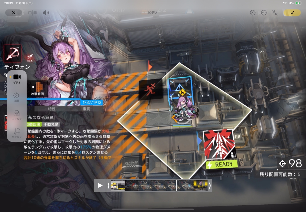 まずは、狙撃のティフォンちゃんを投入。スキルゲージを溜めていきます。