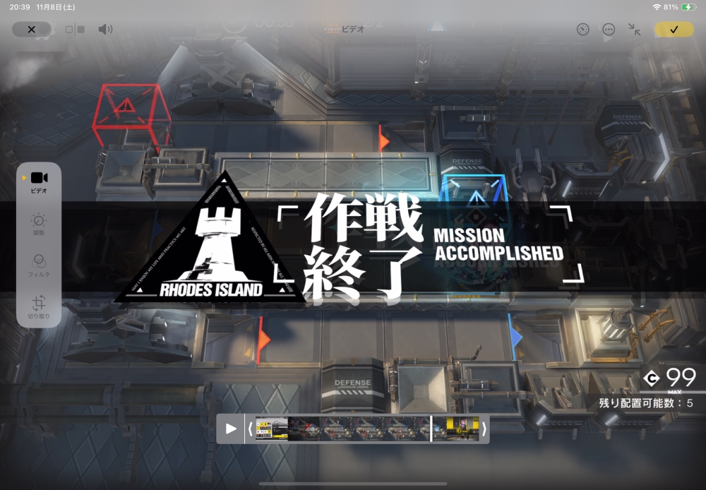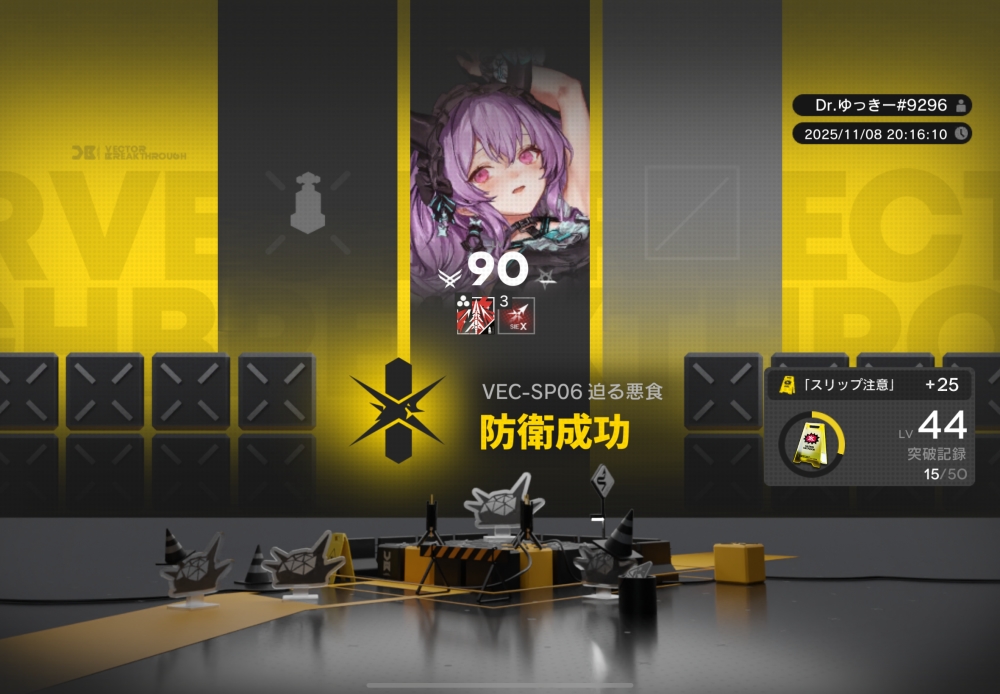 あとは、このまま敵を倒して作戦終了。無事、アークナイツ VEC-SP06 攻略完了です。お疲れさまでした。