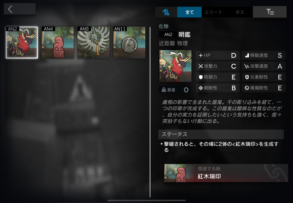 磨礱の強化版。倒すと2体の【紅製瑞印】を生み出す器鬼。20体ほど襲いかかってくる。