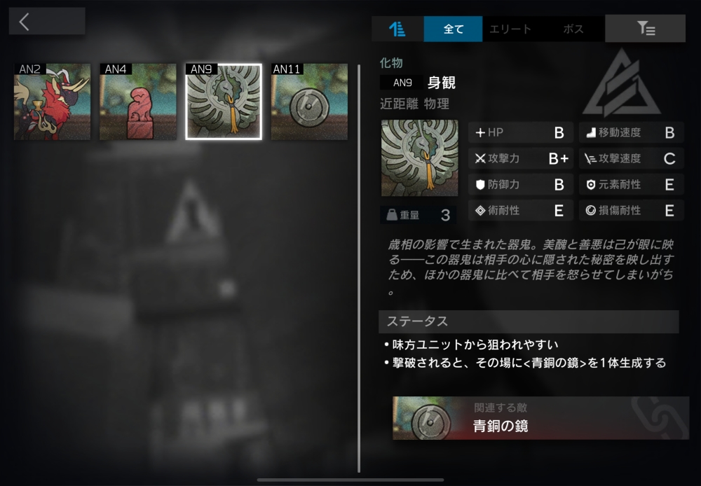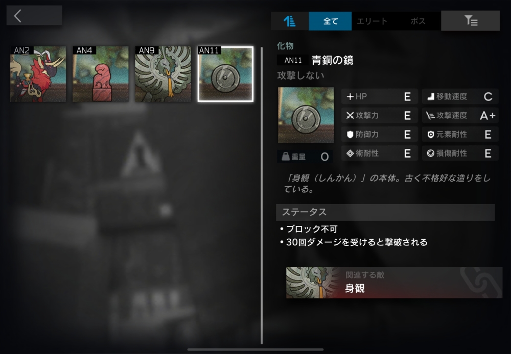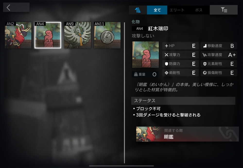 明鑑(めいかん)の本体で敵の数にカウントされない。ブロック不可で、3回攻撃すると倒せる。