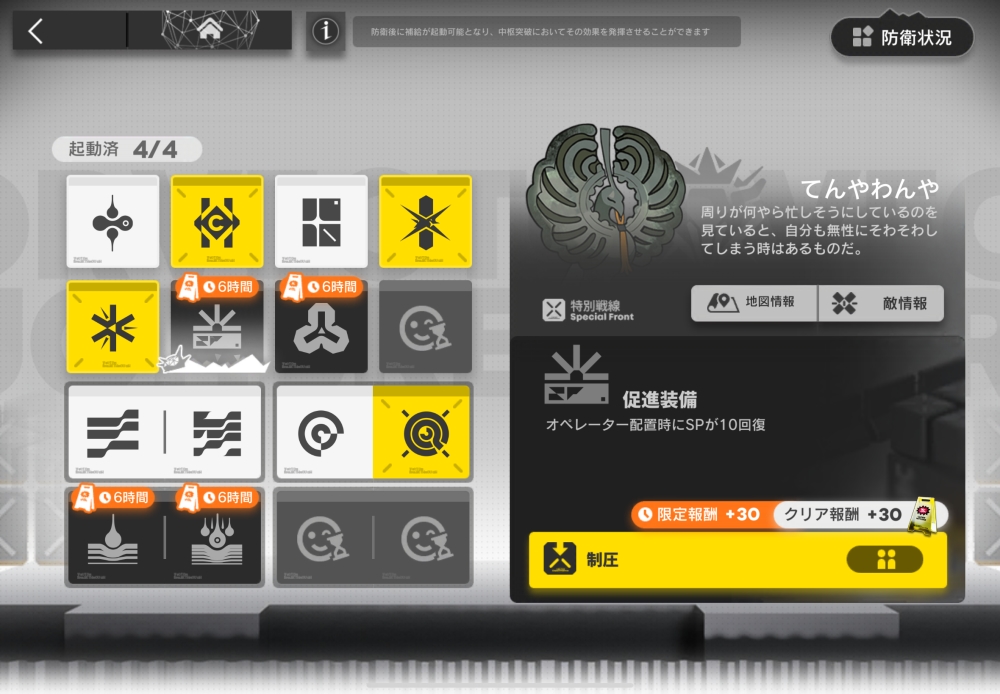 クリアすると「オペレーター配置時にSPが10回復」を装備できるようになるステージ。
