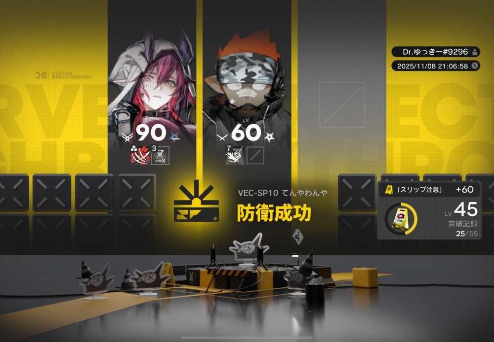 あとは、このまま敵を倒して作戦終了。無事、アークナイツ VEC-SP10 攻略完了です。お疲れさまでした。