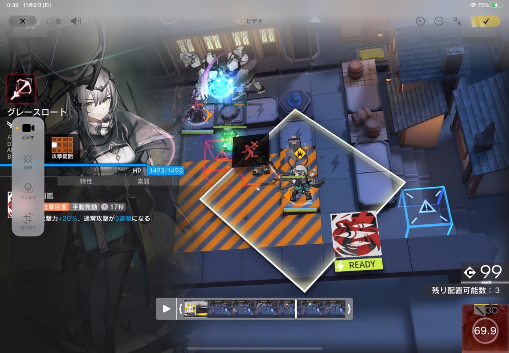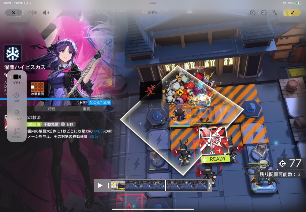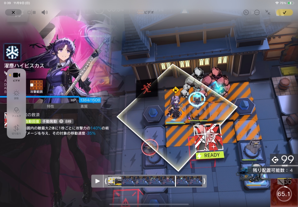 続いて、周囲を回復させながら、攻撃もしたいので、医療の濯塵ハイビスカスちゃんを投入。スキルゲージを溜めていきます。