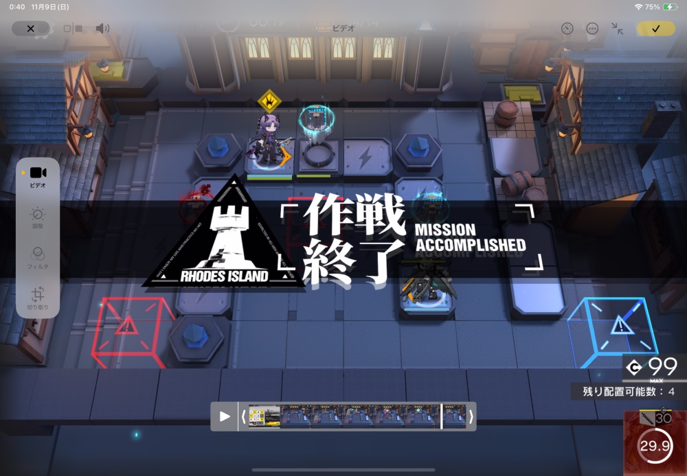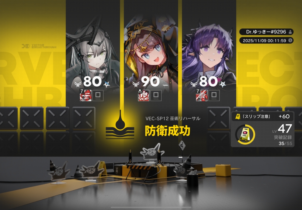 あとは、このまま敵を倒して作戦終了。無事、アークナイツ VEC-SP12 攻略完了です。お疲れさまでした。