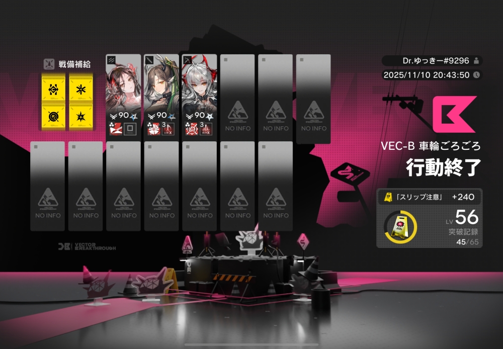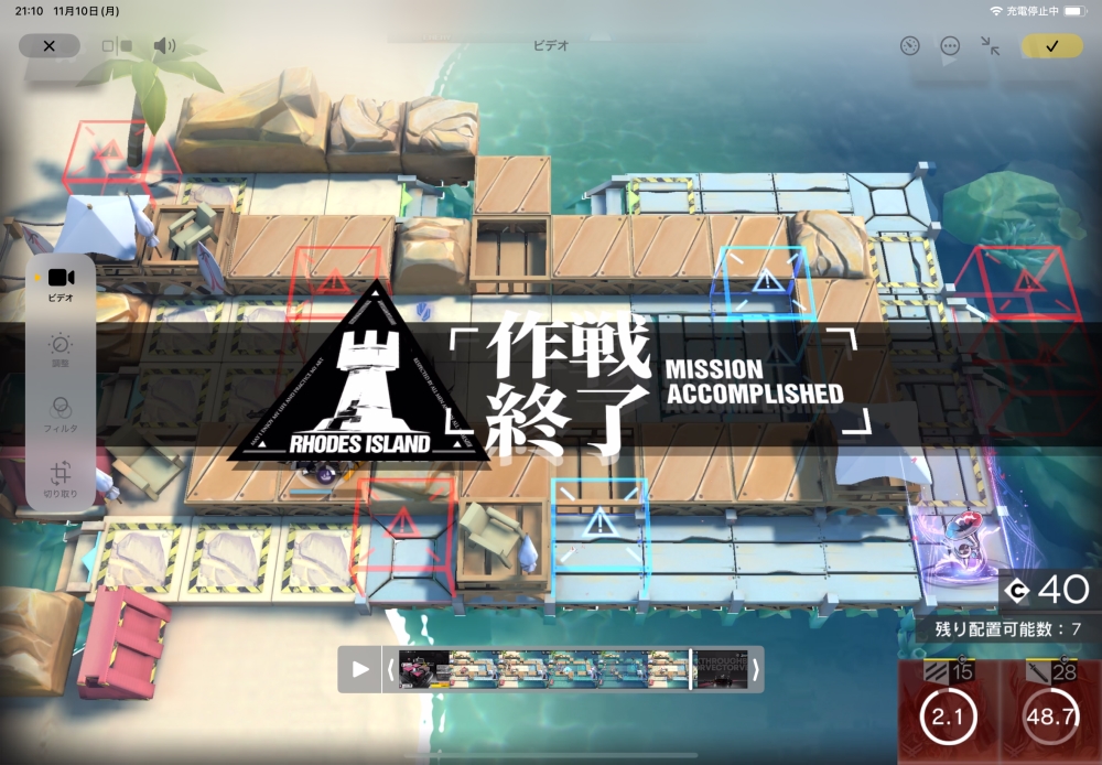 あとは、このまま敵を倒して作戦終了。無事、アークナイツ VEC-B 攻略完了です。お疲れさまでした。