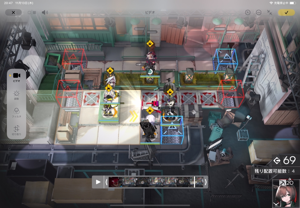 <撮影カメラ>オペレーターをカメラに向けて隣接4マスに配置すると、オペレーターの向いている方向を照らして撮影エリアにする