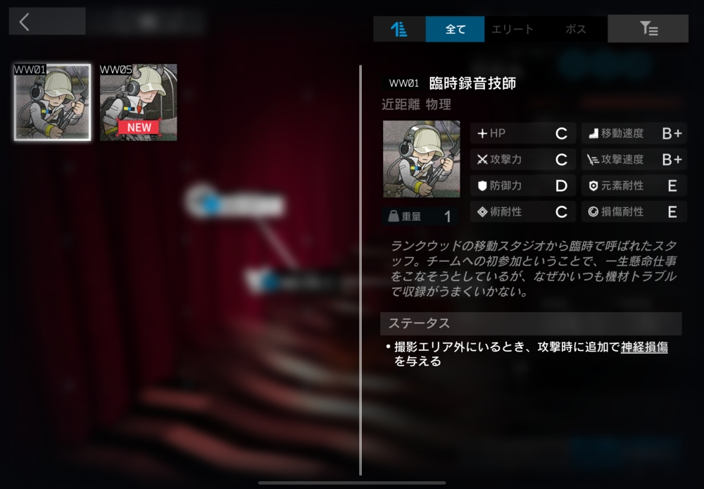 ランクウッドの移動スタジオから臨時で呼ばれたスタッフ。撮影エリア外では、通常攻撃時に追加で攻撃力20%(70)の神経損傷を与えてくる。今回初登場。