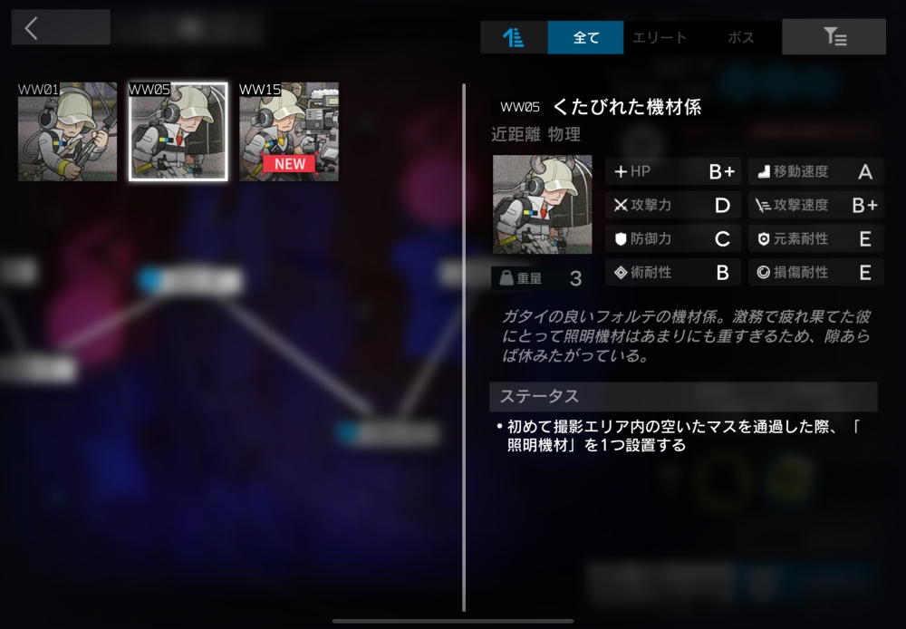 ガタイの良いフォルテの機材係。撮影エリア内の空きマスに初めて侵入した時、そのマスに装置<照明機材>を配置する。18体ほど襲いかかってくる。