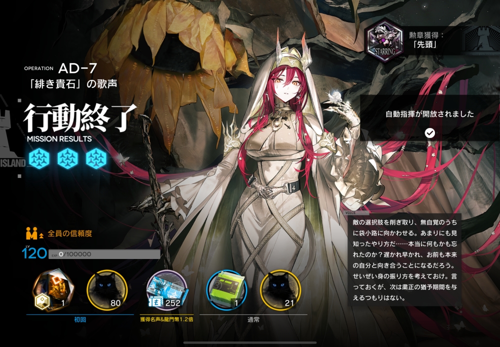 あとは、このまま敵を倒して作戦終了。無事、アークナイツ AD-7 攻略完了です。お疲れさまでした。
