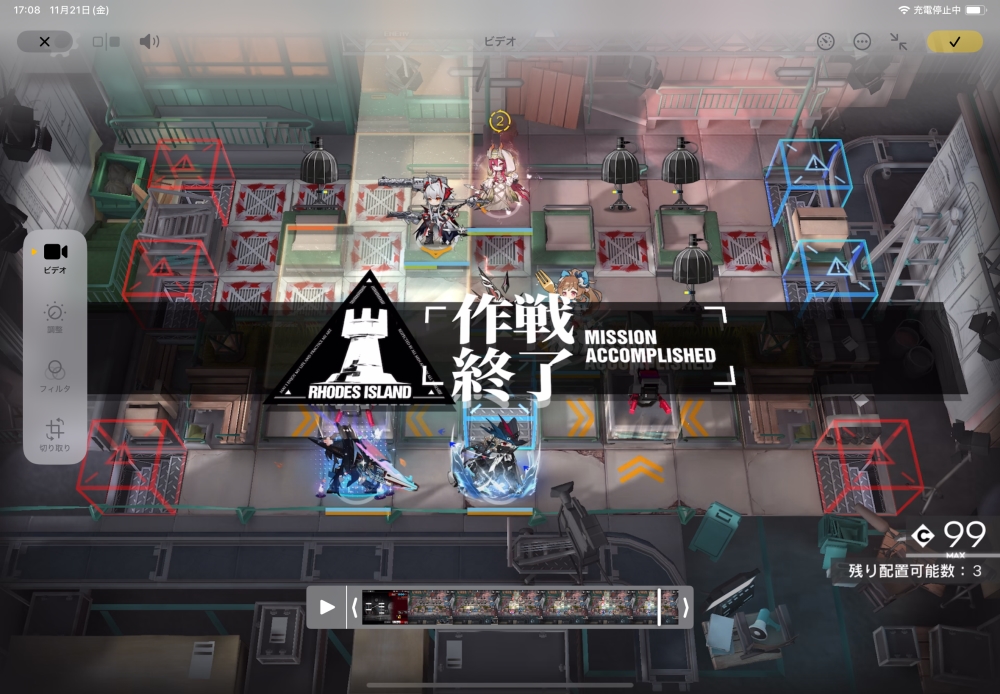 あとは、このまま敵を倒して作戦終了。無事、アークナイツ AD-EX-5 攻略完了です。お疲れさまでした。