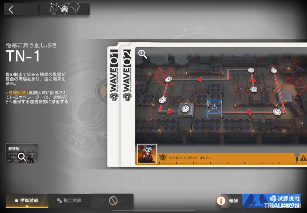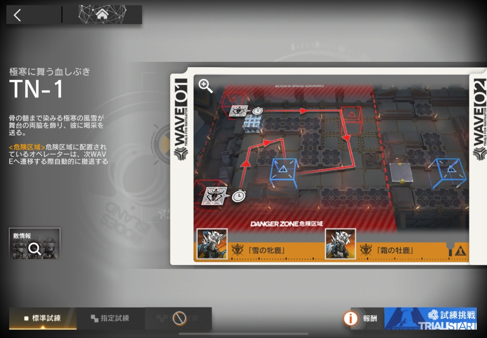 アークナイツ TN-1 極寒に舞う血しぶきの攻略をしていきます。