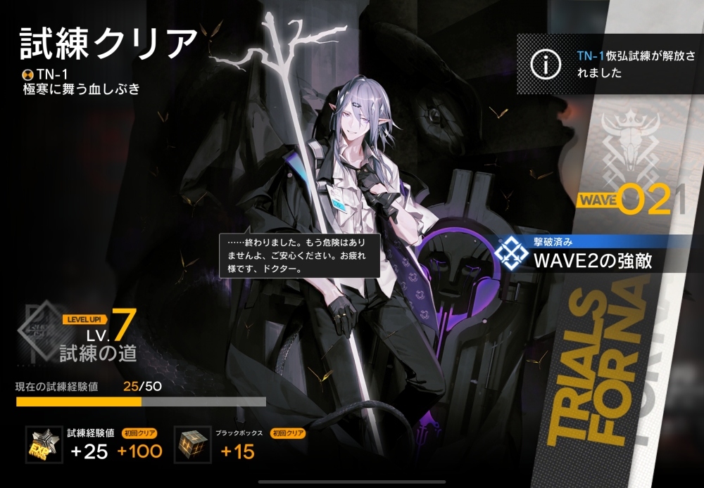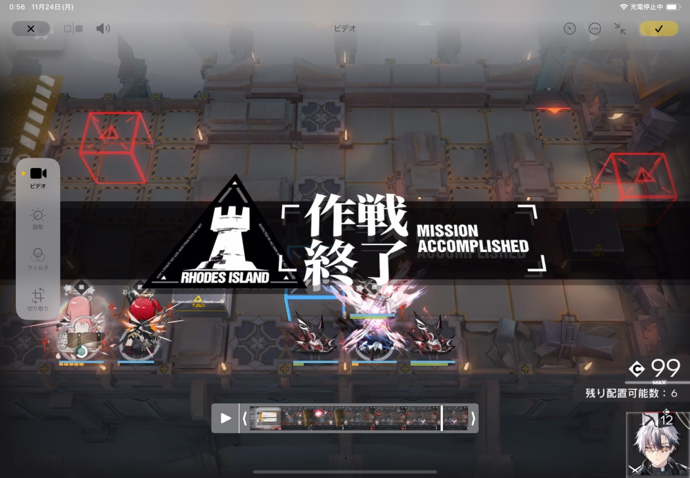 あとは、このまま敵を倒して作戦終了。無事、アークナイツ TN-1 攻略完了です。お疲れさまでした。
