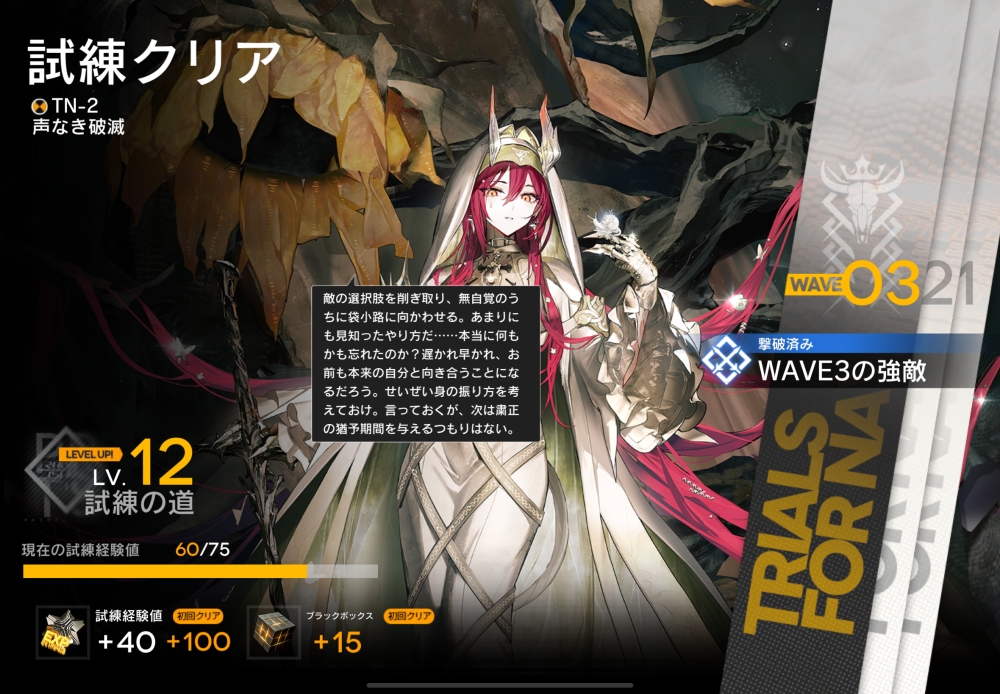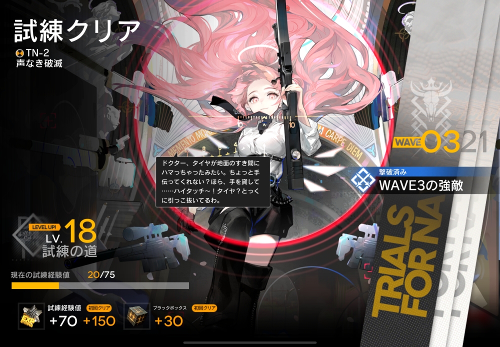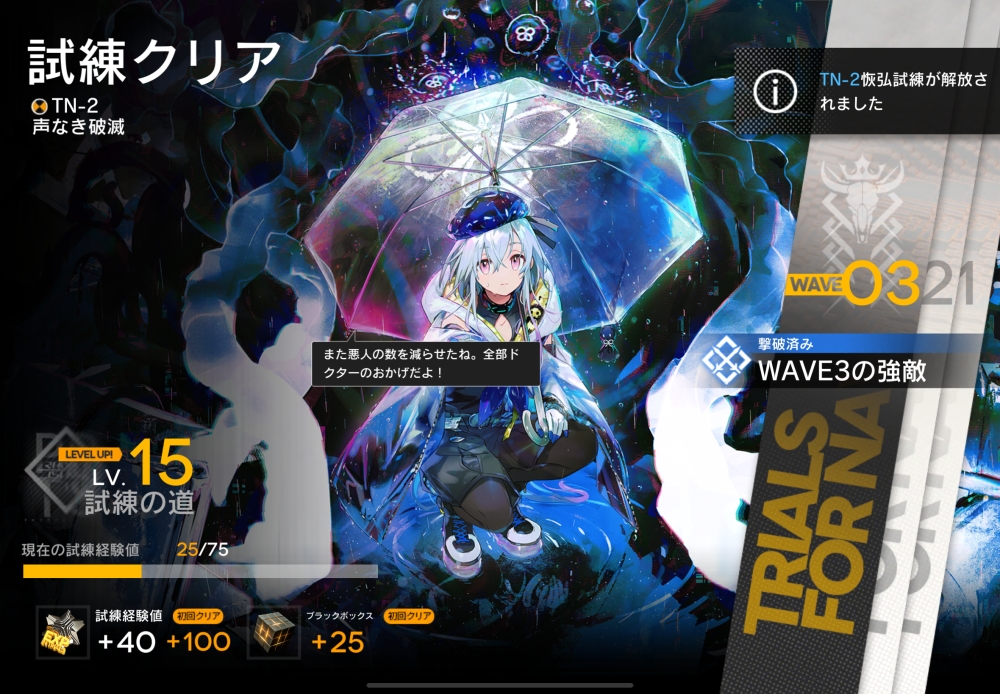あとは、このまま敵を倒して作戦終了。無事、アークナイツ TN-2 攻略完了です。お疲れさまでした。