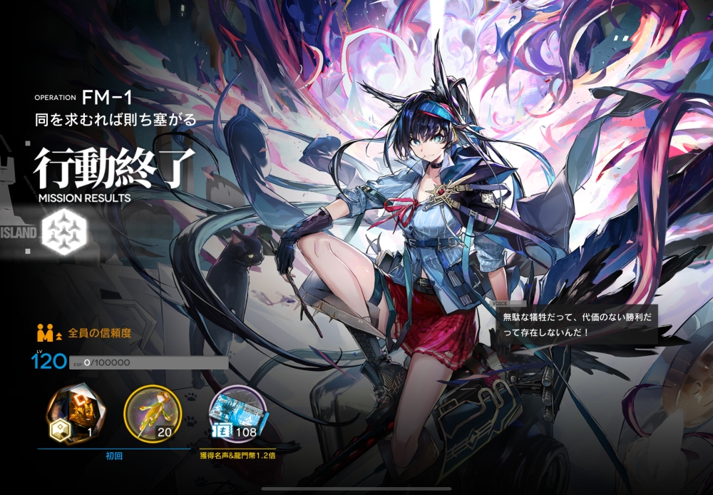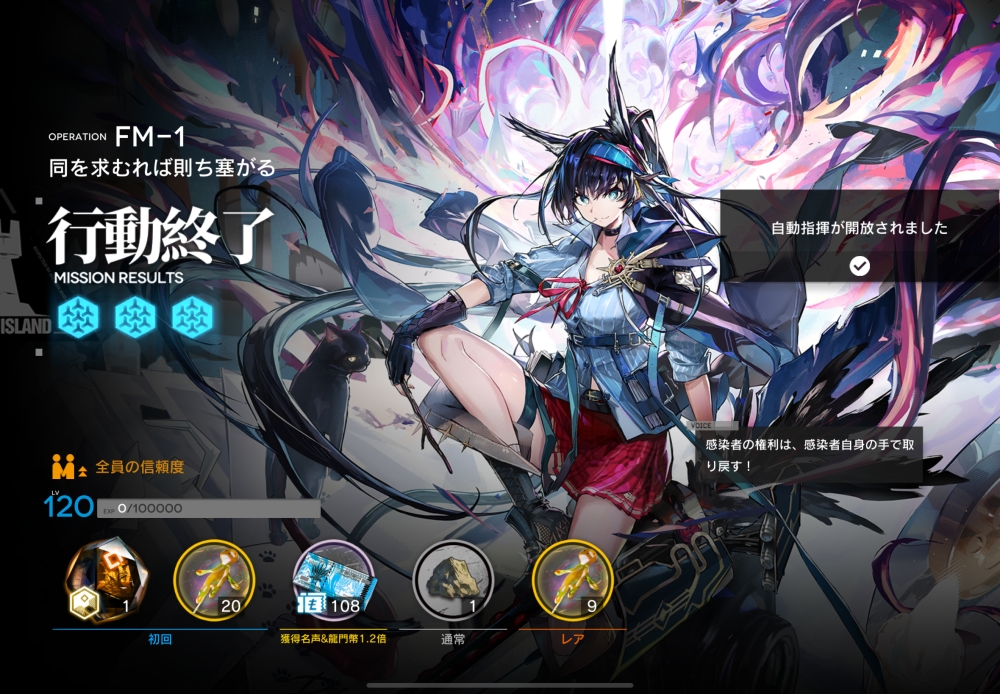 あとは、このまま敵を倒して作戦終了。無事、アークナイツ FM-1 攻略完了です。お疲れさまでした。