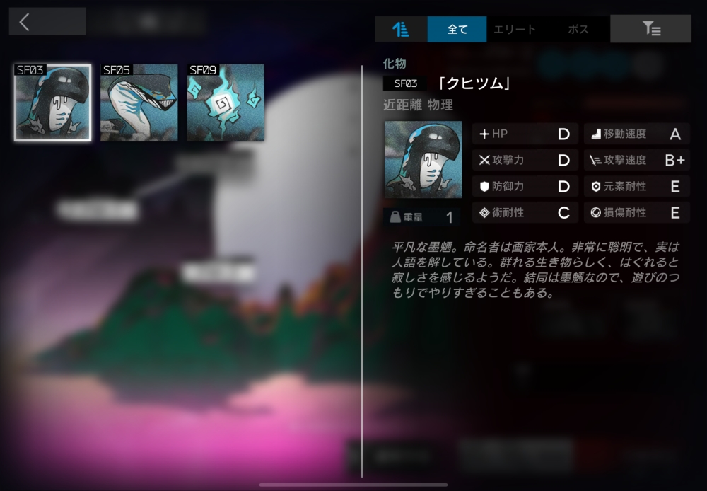 悪どい墨魎、命名者は画家本人。遠距離物理攻撃をしてくる。4体ほど襲いかかってくる。