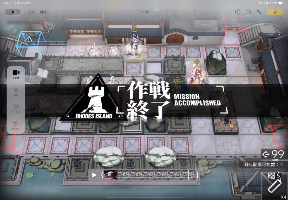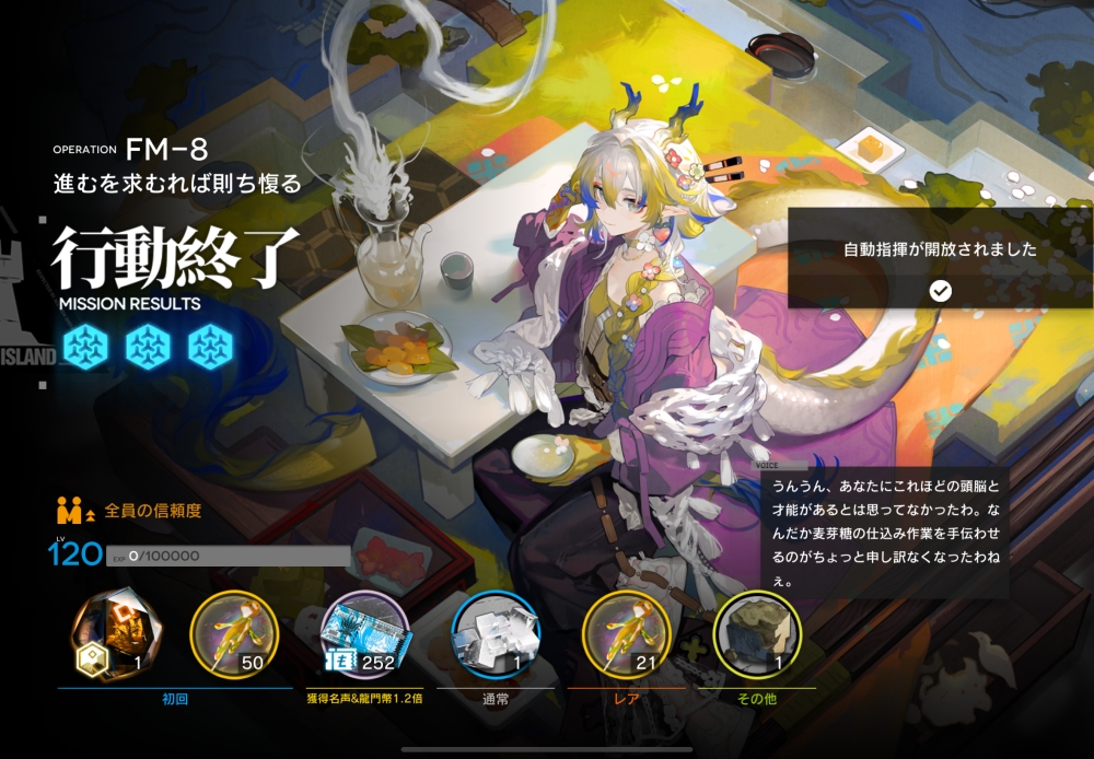 あとは、このまま敵を倒して作戦終了。無事、アークナイツ FM-8 攻略完了です。お疲れさまでした。
