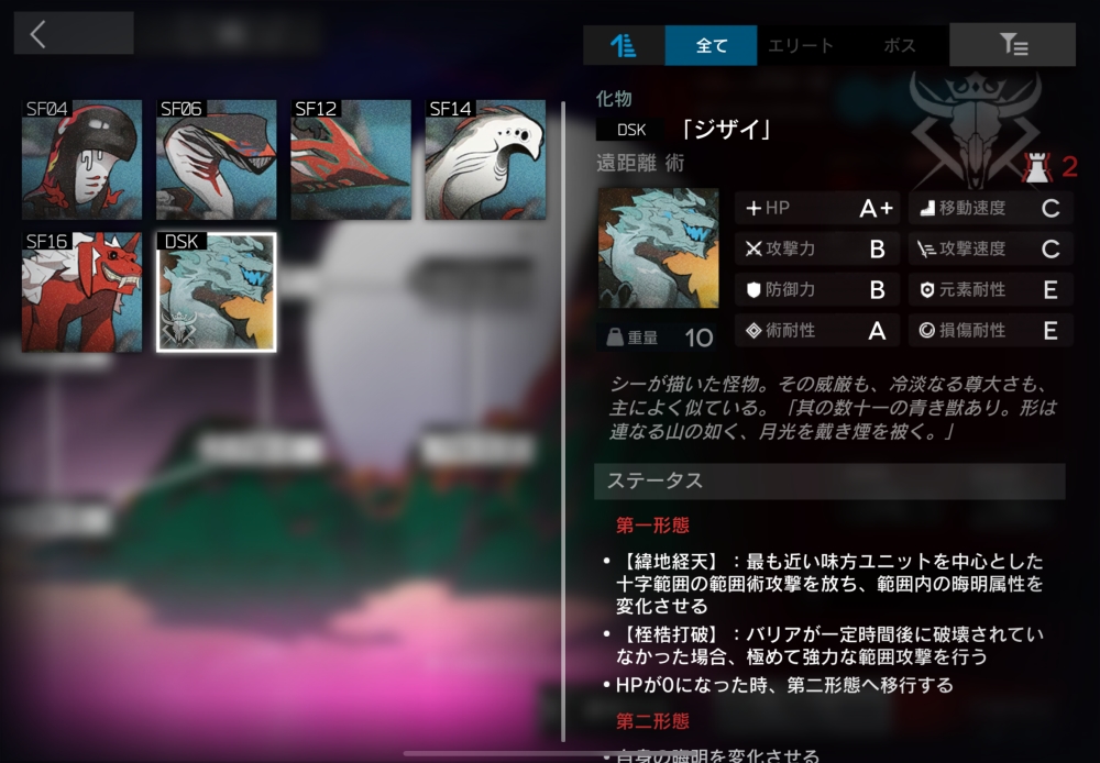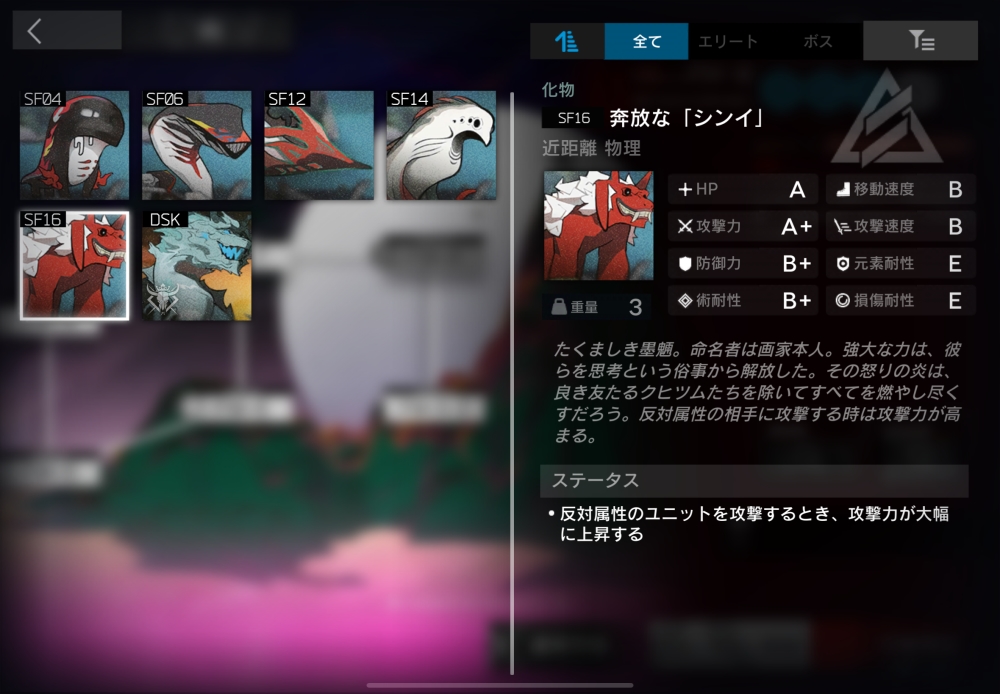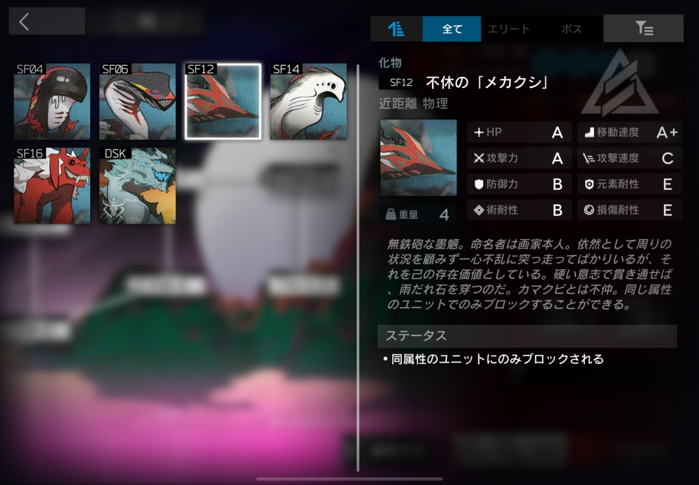同属性のオペレーターのみブロックできる墨のもののけ。より硬く、そしてクチバシ?も鋭くなった。3体ほど突っ走ってくる。