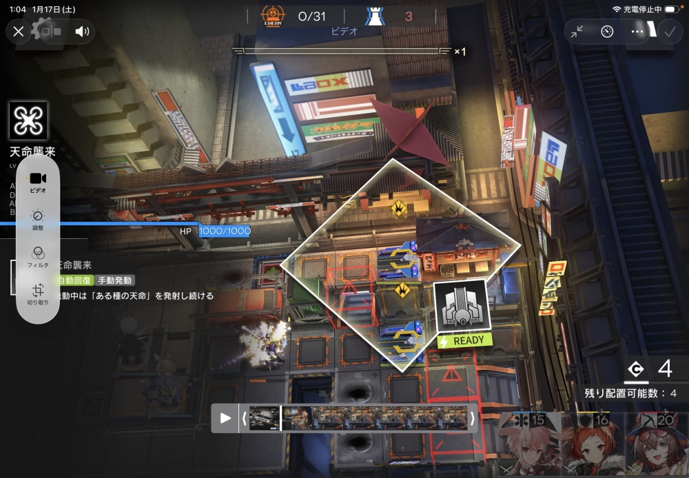 続いて、上側にいる敵を削り倒していきたいので、狙撃のアドナキエルくんを投入します。