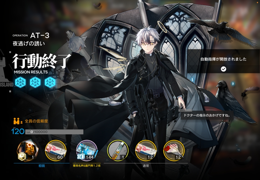あとは、このまま敵を倒して作戦終了。無事、アークナイツ AT-3 攻略完了です。お疲れさまでした。