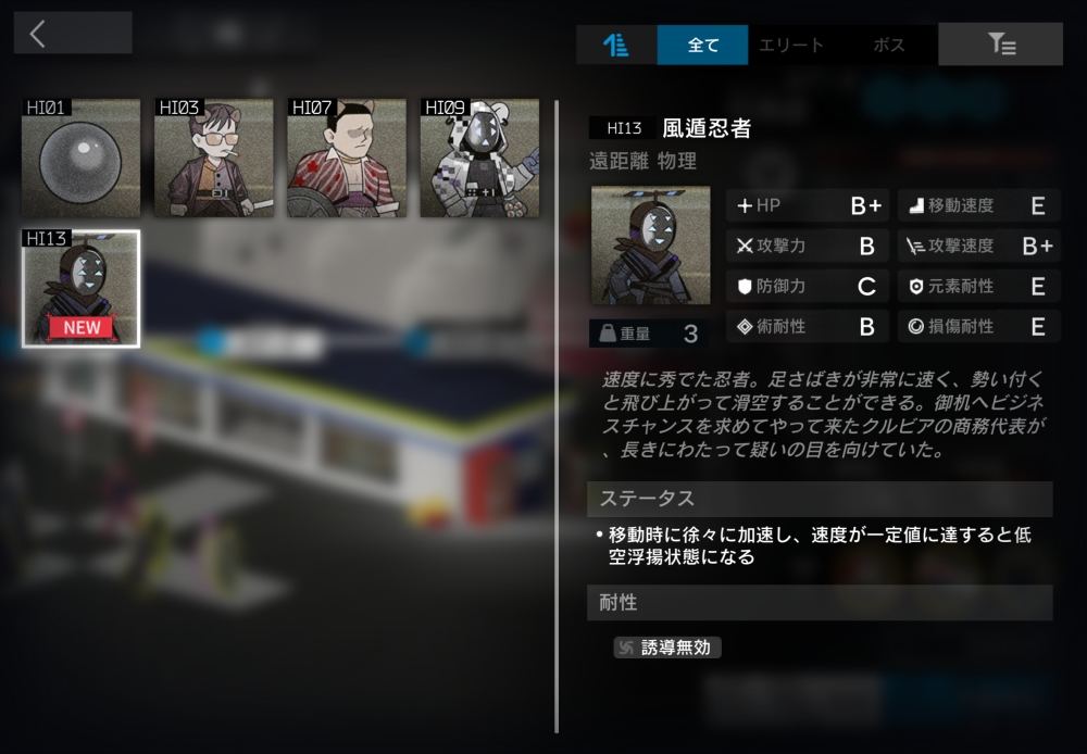 速度に秀でた忍者。遠距離物理攻撃をしてくる。出現から3秒後に加速状態に移行。0.5秒ごとに移動速度+20%。ただし、スタン・バインド・強制移動を受けるか、ブロックされると加速状態を終了する。上記の状態が解除されると、また加速状態に移行。移動速度が800%以上に達すると低空浮揚状態になり、加速状態を終了する。低空浮揚中は攻撃せず、加速状態に移行しない。こちらもスタン・睡眠・凍結状態になると低空浮揚は解除される。今回初登場。