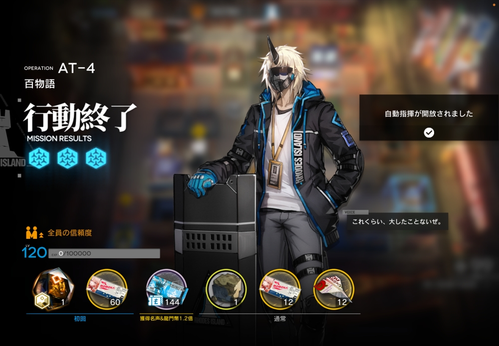 あとは、このまま敵を倒して作戦終了。無事、アークナイツ AT-4 攻略完了です。お疲れさまでした。