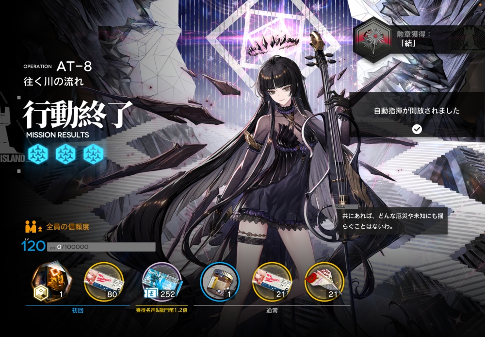 あとは、このまま敵を倒して作戦終了。無事、アークナイツ AT-8 攻略完了です。お疲れさまでした。