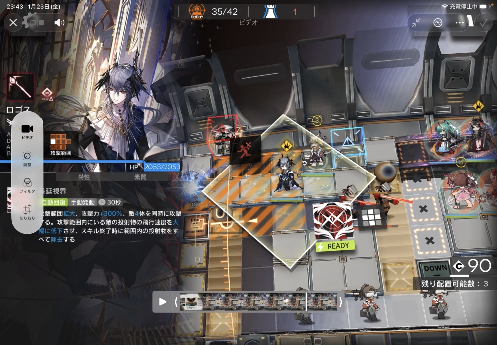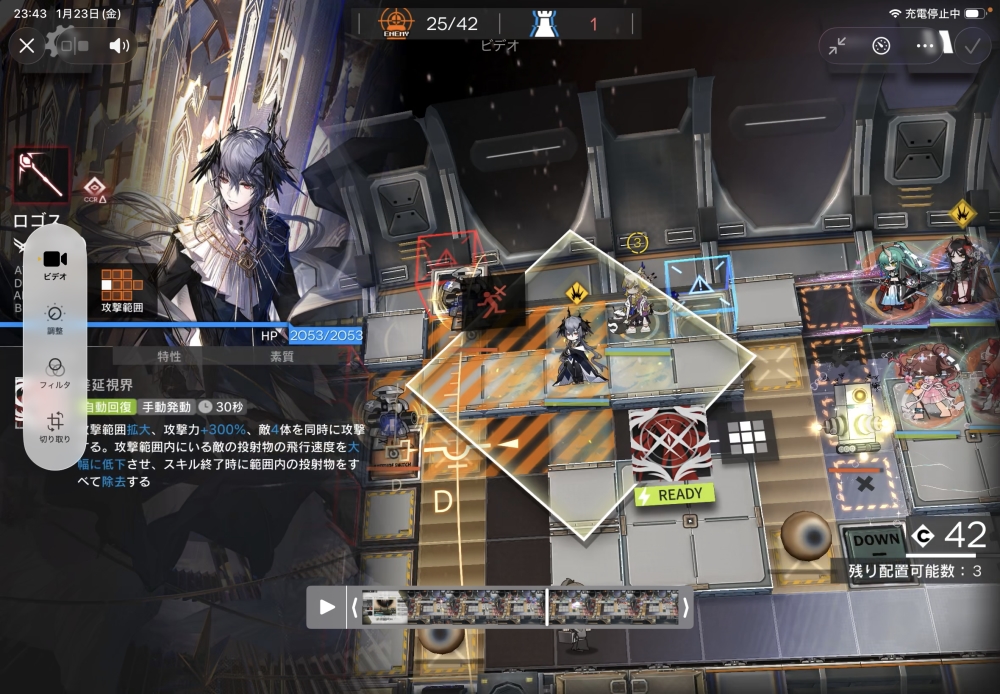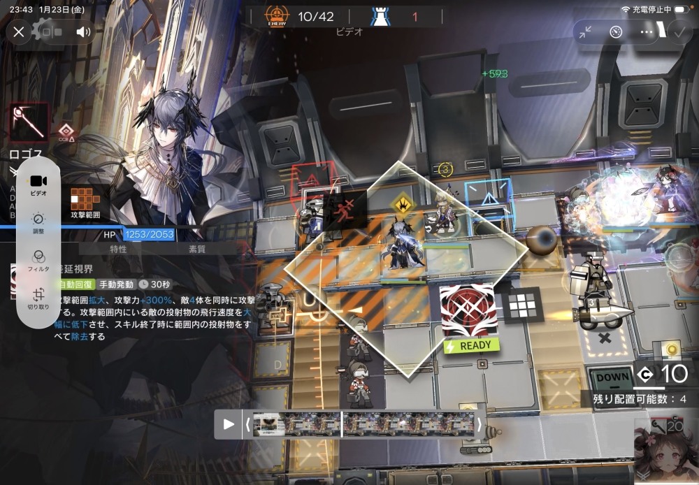 「トラフィックタワー」量産型を屠りたいので、術師のロゴス大先生を投入。スキルゲージを溜めていきます。