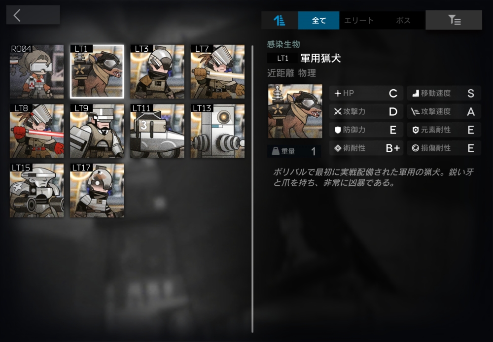ボリバルで最初に実戦配備された軍用の猟犬。術耐性がやや高い。8体ほど襲いかかってくる。