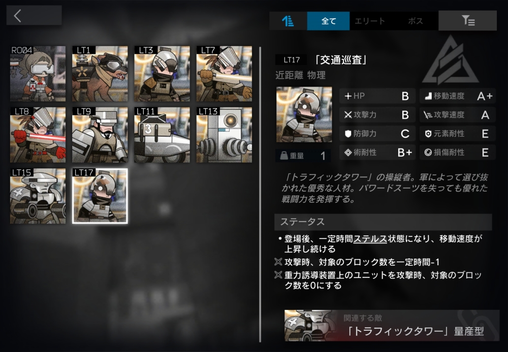 「トラフィックタワー」の操縦者。出現から4秒間ステルス状態になり、移動速度+110%。攻撃時、対象のブロック数を3秒間-1にしてくる。