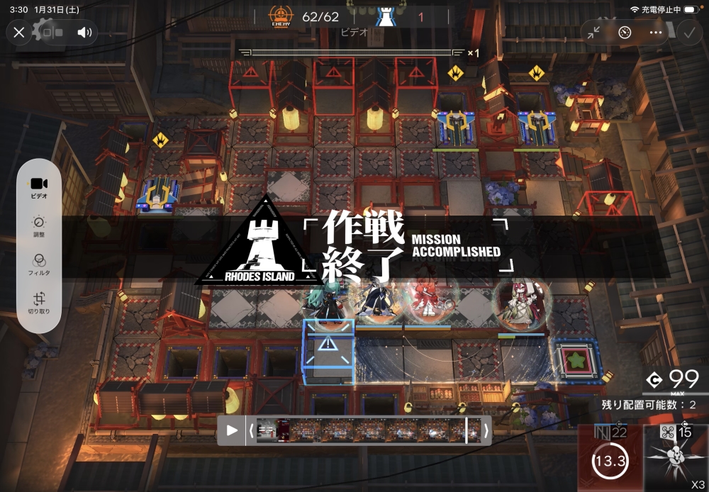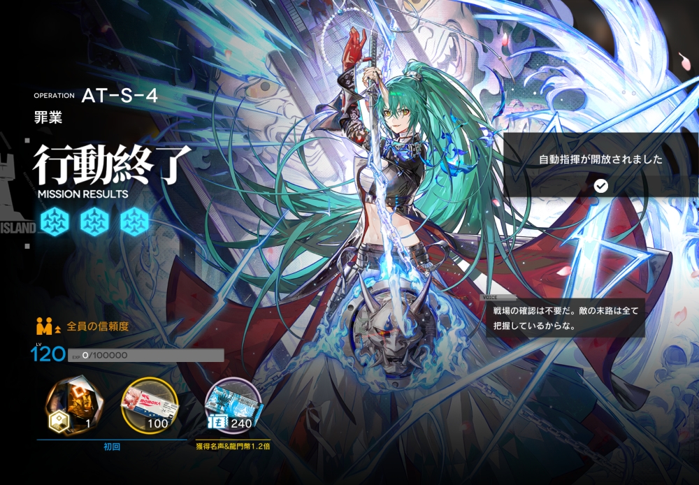 あとは、このまま敵を倒して作戦終了。無事、アークナイツ AT-S-4 攻略完了です。お疲れさまでした。