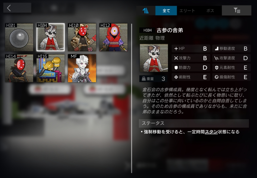 金石会の古参構成員。強制移動後、3秒間スタンする。22体ほど襲いかかってくる。