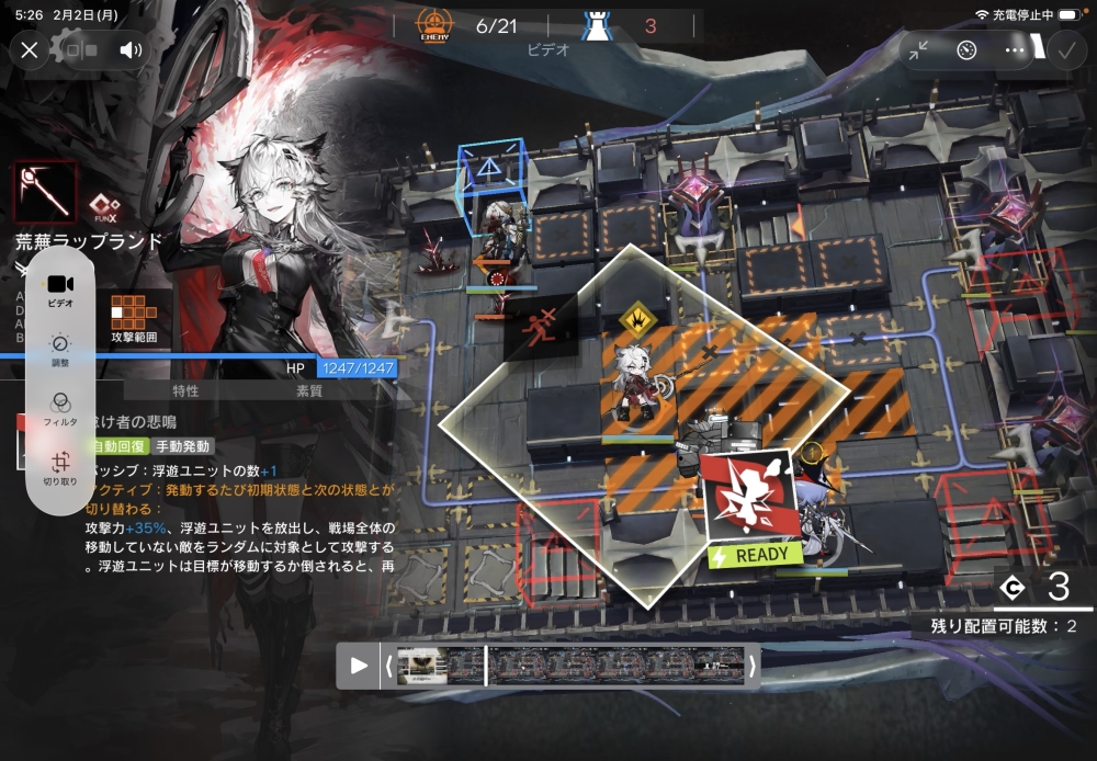最後に、敵を削り倒していきたいので、術師の荒蕪ラップランドちゃんを投入っと。スキルゲージは溜まり次第解放で。