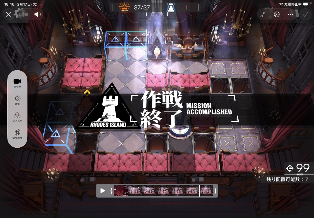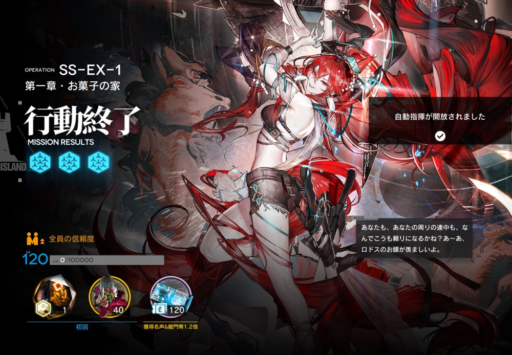 あとは、このまま敵を倒して作戦終了。無事、アークナイツ SS-EX-1 攻略完了です。お疲れさまでした。