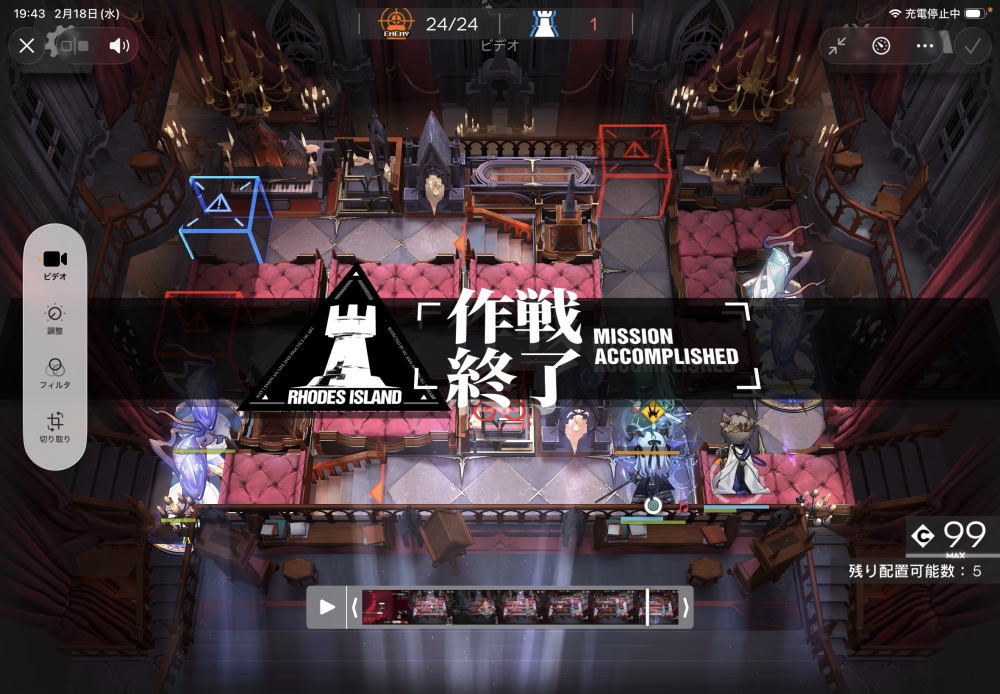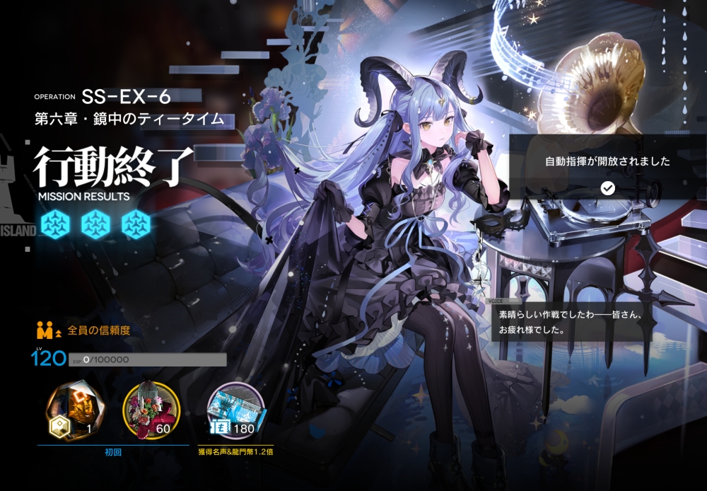 あとは、このまま敵を倒して作戦終了。無事、アークナイツ SS-EX-6 攻略完了です。お疲れさまでした。