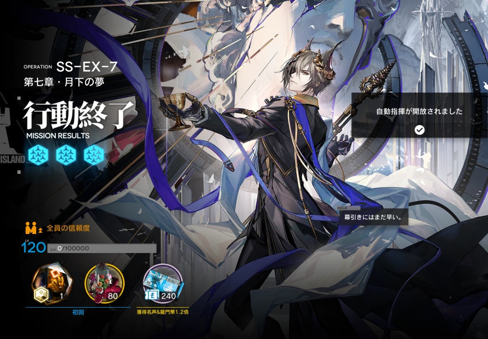 あとは、このまま敵を倒して作戦終了。無事、アークナイツ SS-EX-7 攻略完了です。お疲れさまでした。