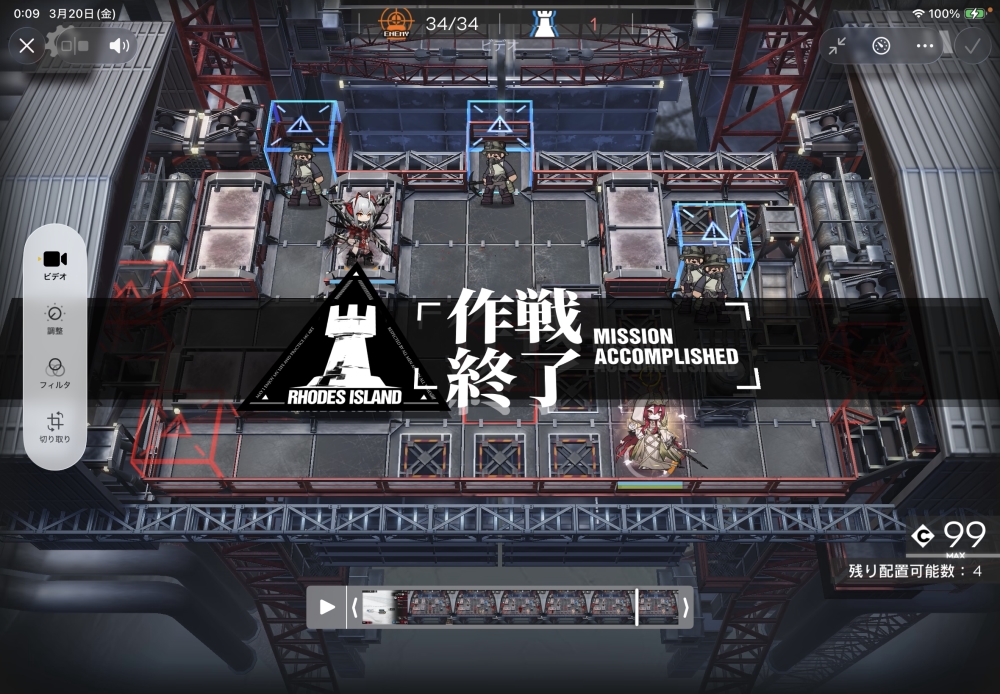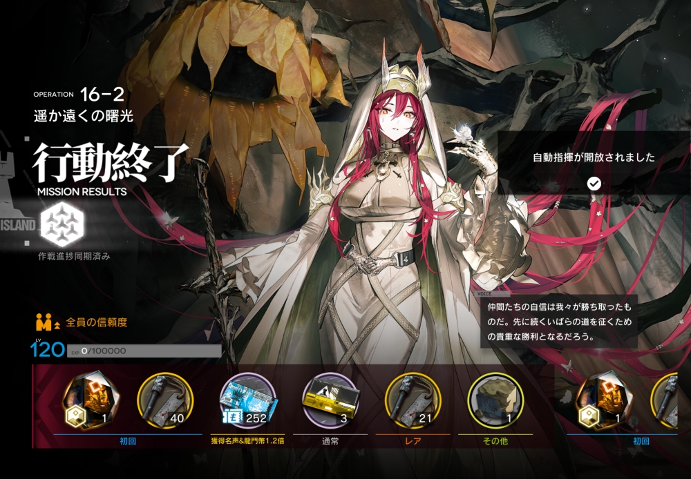 あとは、このまま敵を倒して作戦終了。無事、アークナイツ 16-2 攻略完了です。お疲れさまでした。