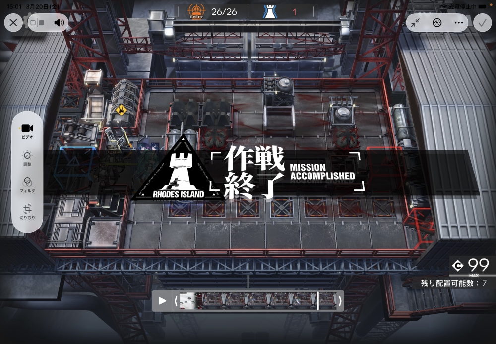 あとは、このまま敵を倒して作戦終了。無事、アークナイツ 16-3 攻略完了です。お疲れさまでした。