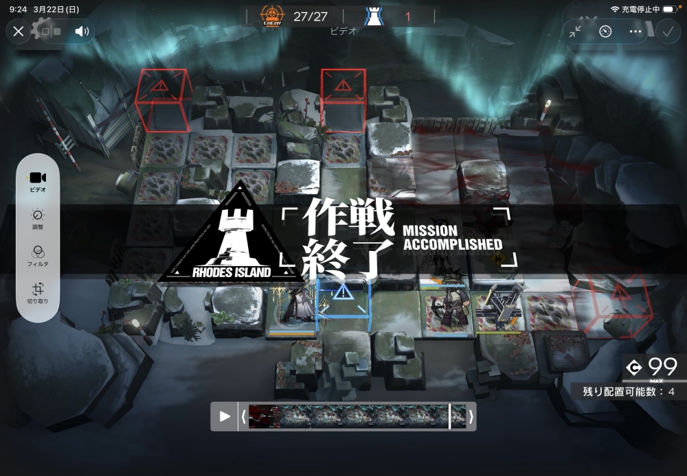 あとは、このまま敵を倒して作戦終了。無事、アークナイツ 16-10 攻略完了です。お疲れさまでした。